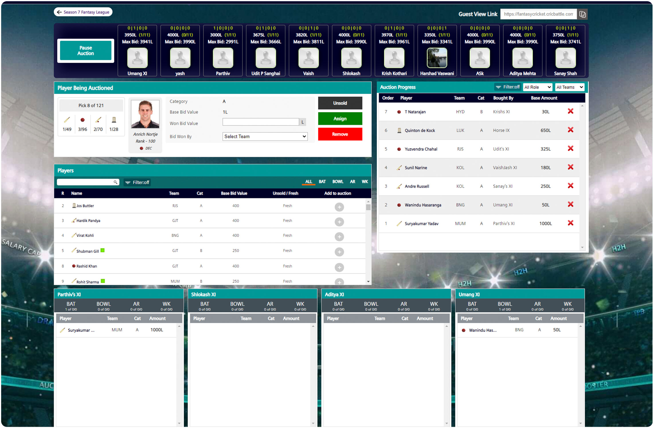 - Auction your own set of players using our platform (we upload the player data for you)