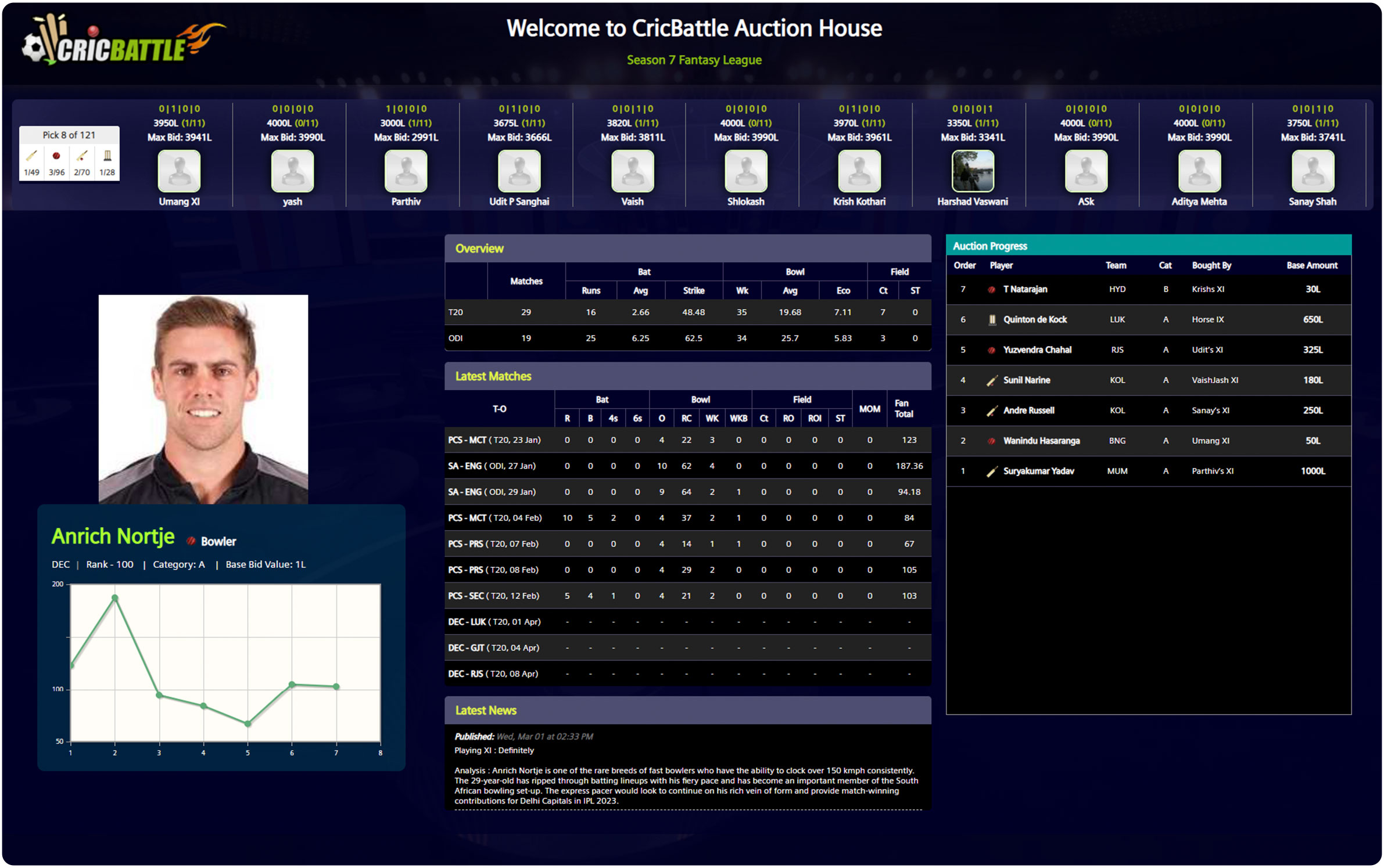 - Auctions are powered by Cricbattle app