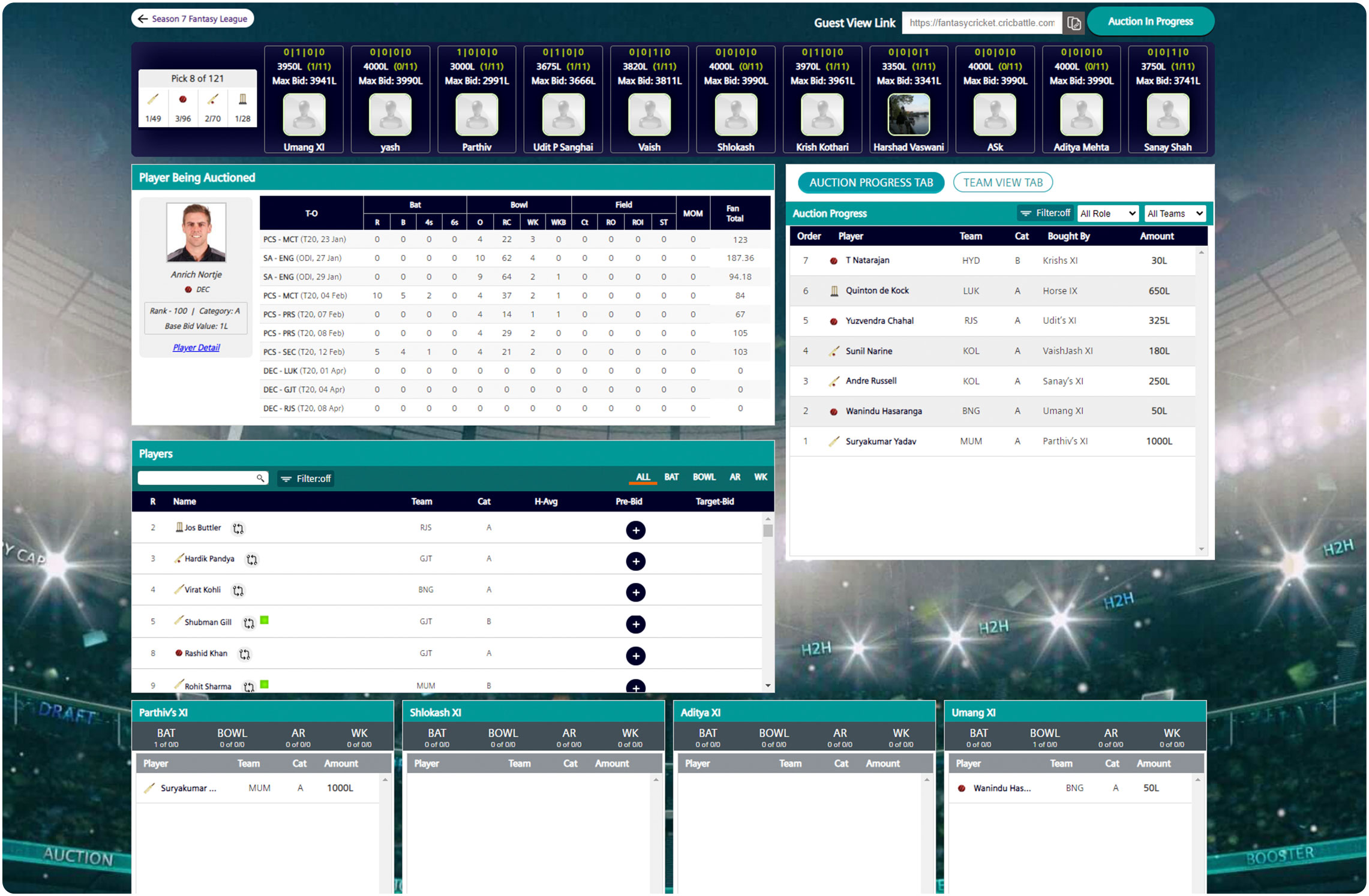 - Each table has live access on our platform to view bids and sold players to plan strategy
